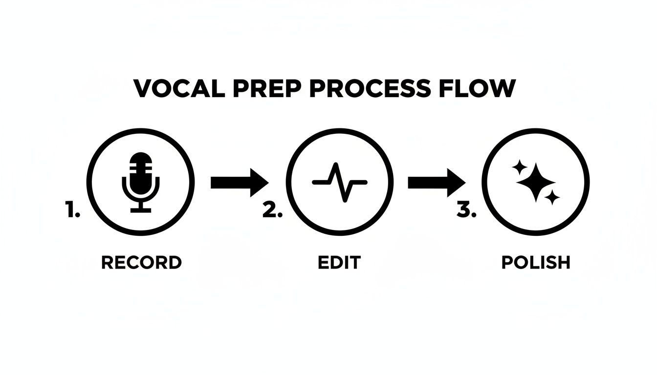 Once you've got the raw audio, it's time for some housekeeping. We're not talking about adding wild effects just yet. This is the cleanup phase—the part where you tighten everything up so the vocal is punchy and ready for the main event. Honestly, this is what separates the pros from the amateurs.