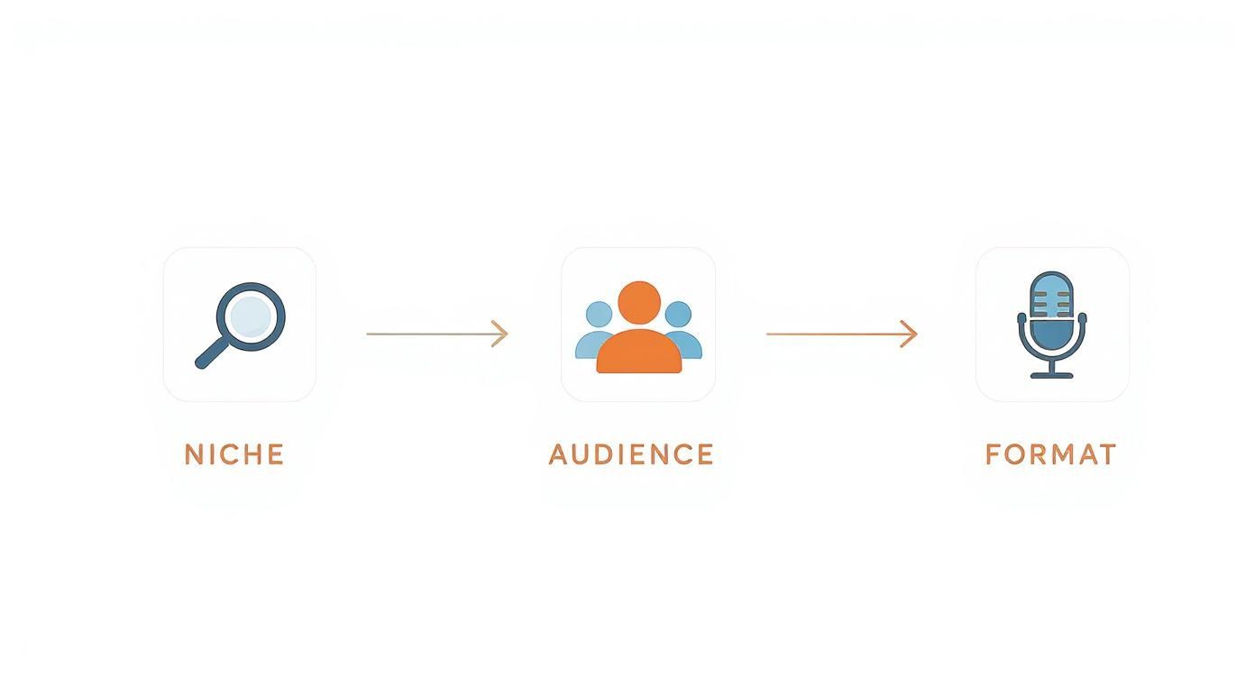 A generic idea like "a business podcast" is far too broad to gain any traction. You need to get specific. Are you making a podcast for freelance graphic designers struggling with client contracts? Or maybe it's for first-time SaaS founders trying to lock down their seed funding. That level of detail is your secret weapon.