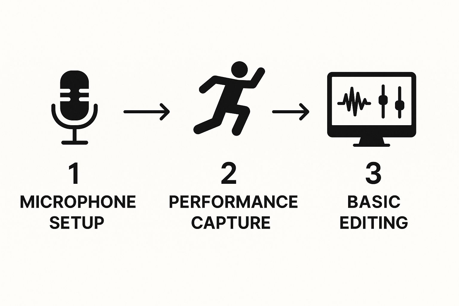 While AI generation offers incredible speed, the foundational principles of sound capture remain the same. This infographic breaks down the traditional steps involved in recording audio from scratch.