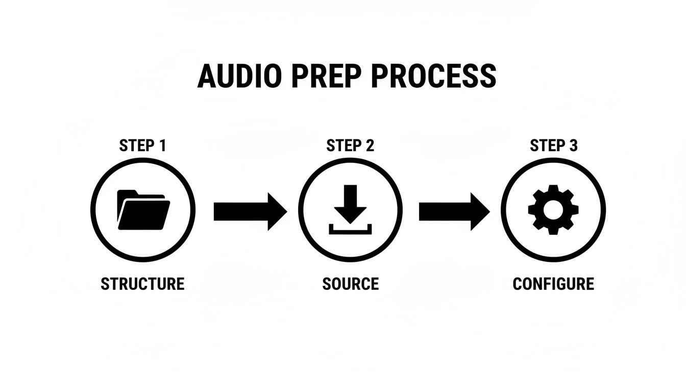 A great sound effects workflow in Premiere Pro doesn't start when you drag a clip onto the timeline. It actually begins way before that, with smart organization and how you source your audio. Nailing this prep work—getting your folders straight, picking the right files, and tweaking your settings—is what saves you from technical nightmares and creative dead-ends down the road.