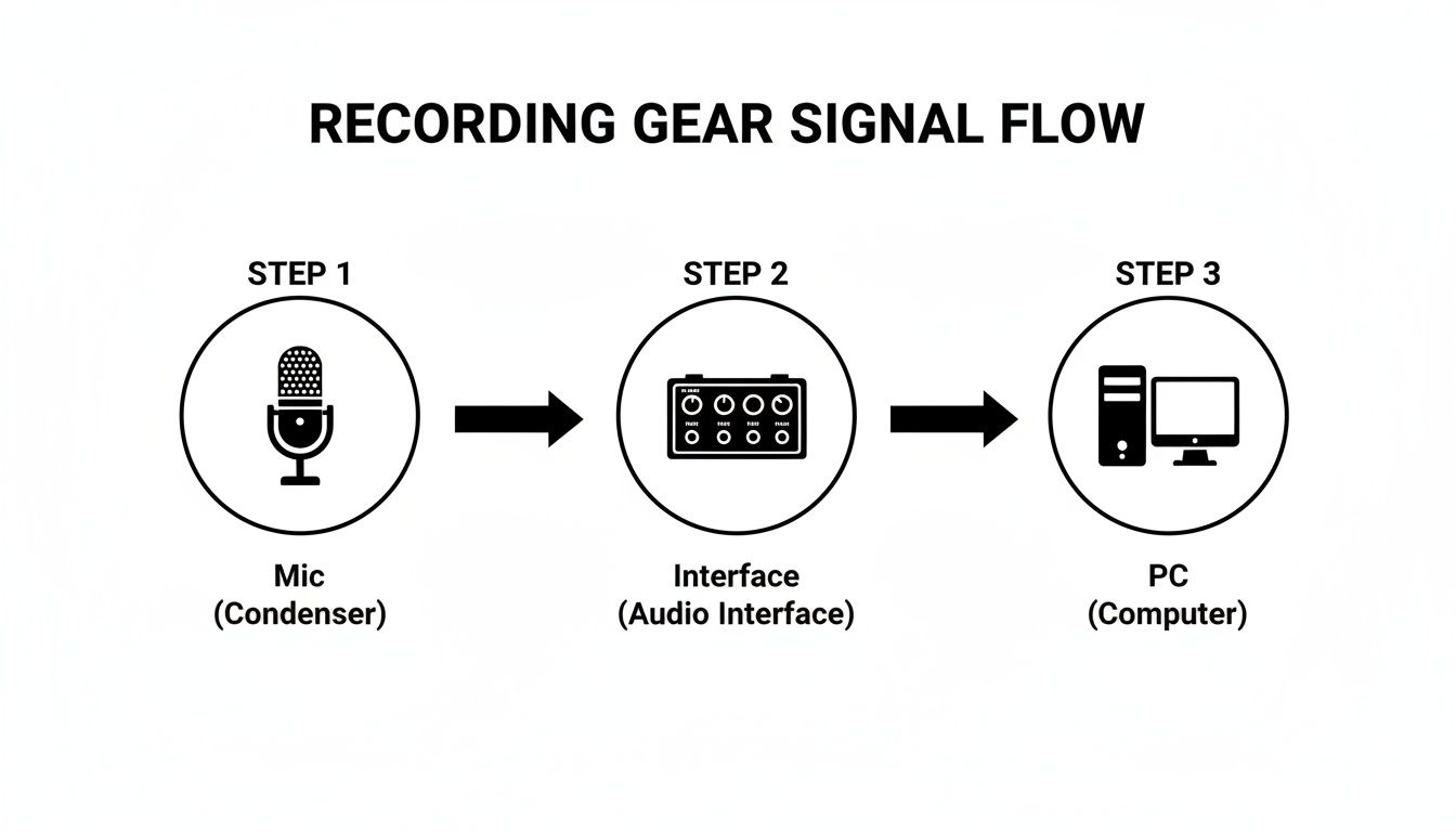 When something goes wrong—and it will—you need to know how to fix it. Understanding your signal flow, or signal chain, is the key. It's simply the path your voice takes from your mouth to the final recording file.