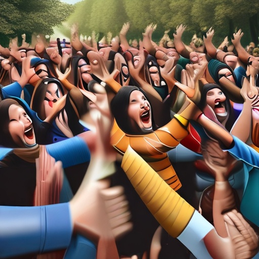 a huge stadium full of people and everyone in chorus simultaneously singing very loudly the phrase "Jaws on the station" like a football chant